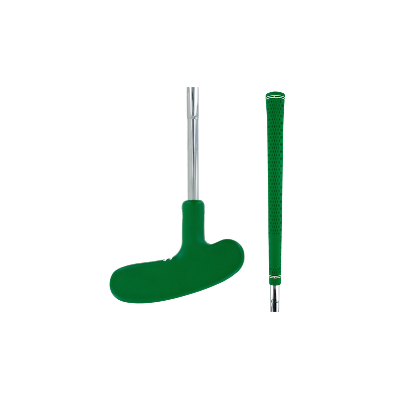 A 31‑inch (79cm) mini golf putter with a green rubber‑covered head, designed for easy control and quick visual identification. Ambidextrous and practical for clubs, rental fleets and family or casual games.