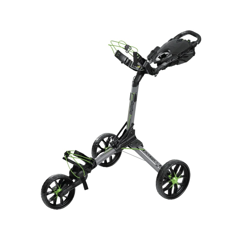 BagBoy Nitron on kergel alumiiniumraamil väga lihtsalt kokku ja lahti käiv kompaktne golfikäru.